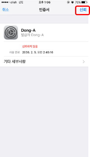 6. <그림6>과 같이 뜨면 신뢰를 터치합니다.
